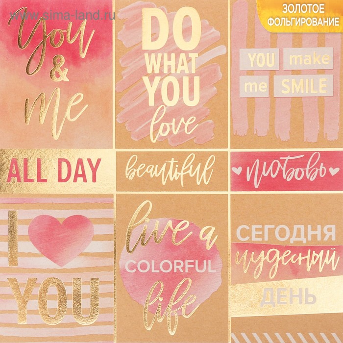 Бумага крафтовая для скрапбукинга с фольгированием , 20 х 20 см, 250 г/м